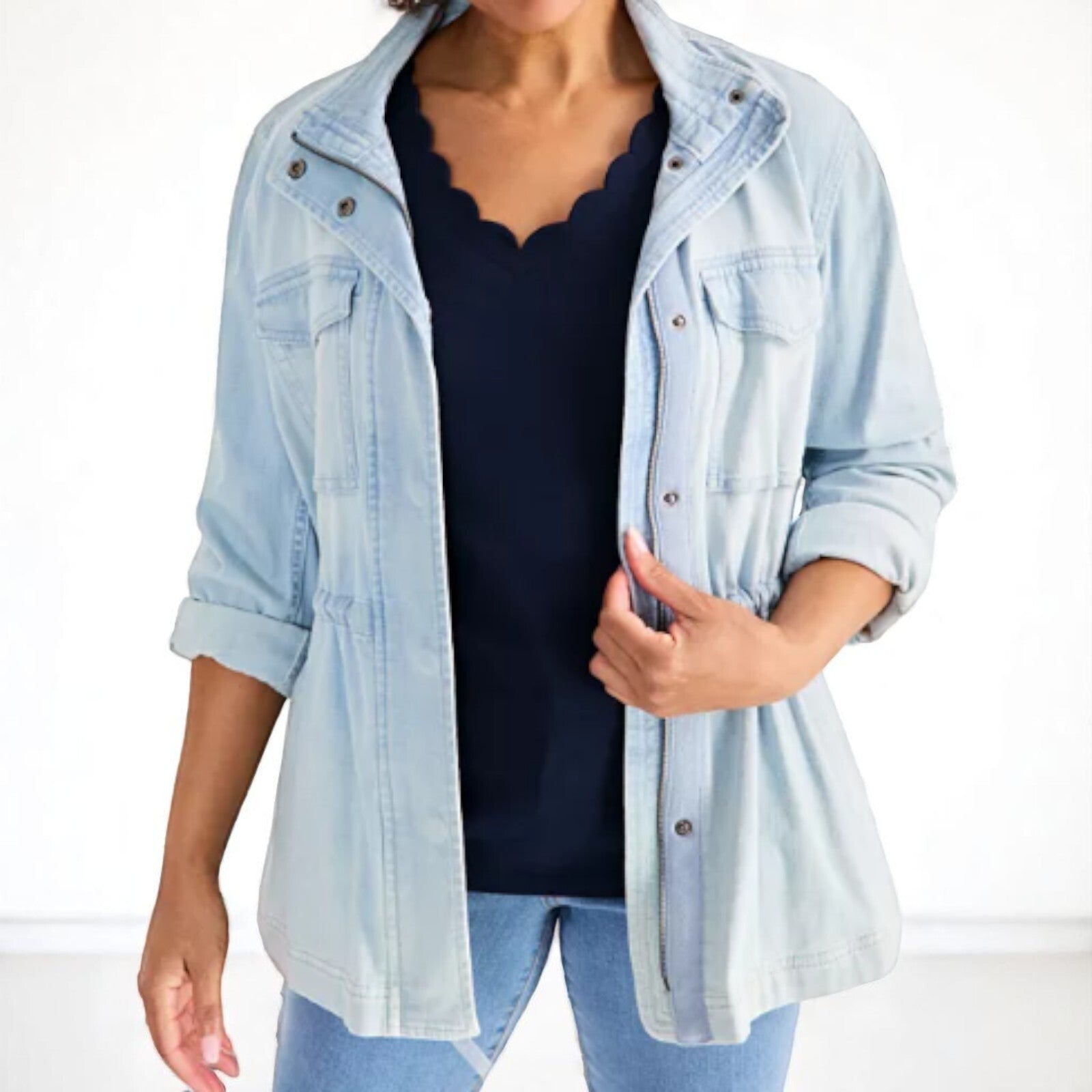 The Style & Co Women's Cotton Scalloped V-Neck Sleeveless Top is a versatile and stylish addition to any wardrobe. Made from 100% cotton knit fabric, this pullover top features a flattering V-neckline and wide straps, making it suitable for travel, casual outings, and workwear. The solid pattern and basic style make it perfect for wearing in the summer, fall, and spring seasons. With sizes available in L and XL, this easy-care and stretchy tank top from Style & Co is a must-have for women looking for a comfortable and fashionable piece.