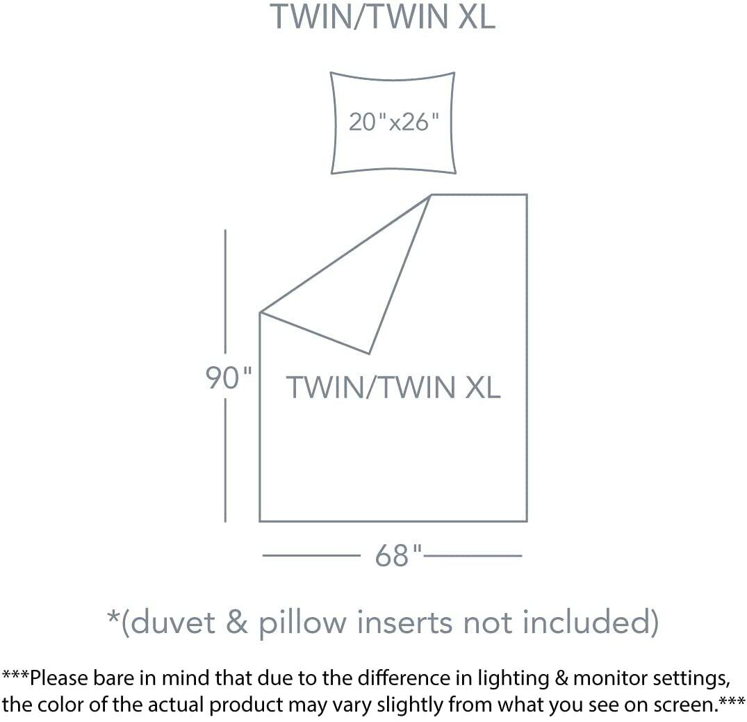 - WHAT’S INCLUDED:Twin/Twin XL Set — One 68”x90” duvet cover and one standard sham 20”x26” with a 2” flange
