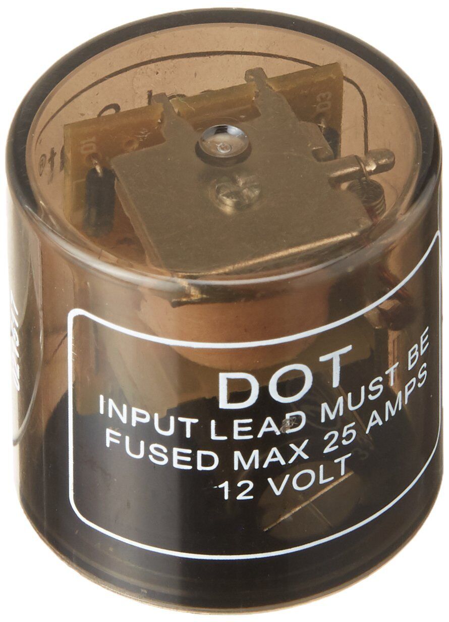 'Flasher, Electro-Mechanical, Voltage Rating 12, Lamp Capacity 10, Flash Rate Per Minute 60 to 120, Number of Terminals 2, Black Finish, For Use With Incandescent Lamps, SAE J590, J945 and FMVSS108 Standards, Package Quantity 1'