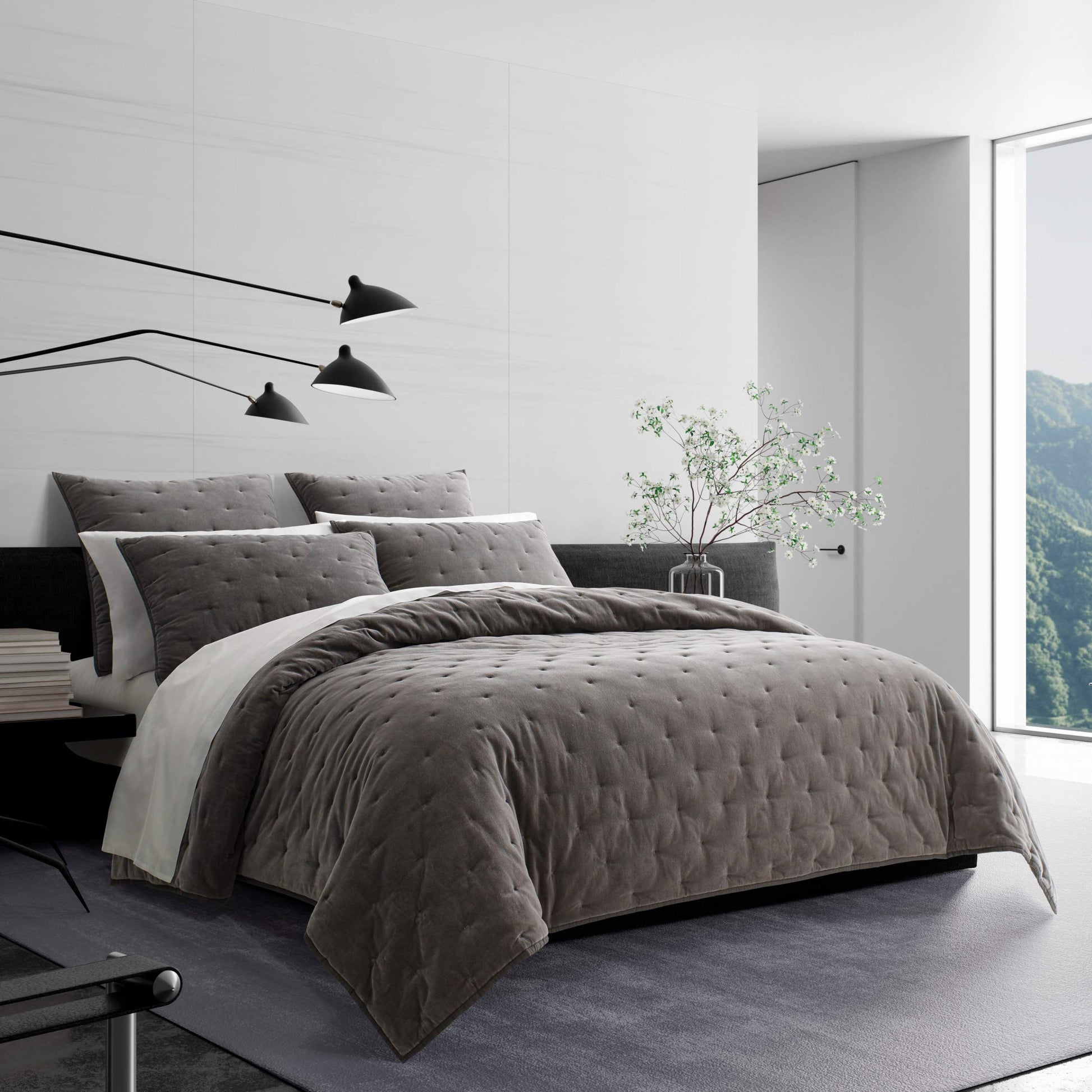 Vera Wang | Velvet Collection | Ultra Soft and Cozy, Breathable and Lightweight Pillow Sham, Elegant and Modern Style for Bedroom Décor, King, Grey
