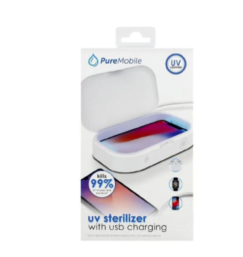 UV sterilizer with USB charging. UV certified. Kills 99% of viruses and bacteria (Protects against viruses and bacteria including, mrsa, e. coli, salmonella, staph, etc). UV Sterilizer with USB Charging: Kills 99% of viruses and bacteria. Compatible with most phone devices 6.5 inches and below. Features: Protects against viruses and bacteria including, mrsa, e. coli, salmon, etc.; sterilizes small items such as phones, airpods, watches, keys, earphones, and jewelry; 3 minute timers. Package Contents: Universal sterilizer aromatherapy machine. Micro USB charging cable. User manual. Before. After. UV light sterilizer. Fits up to 6.5 inches. 3 min UV timer. Keep manual and all relevant information for future reference.