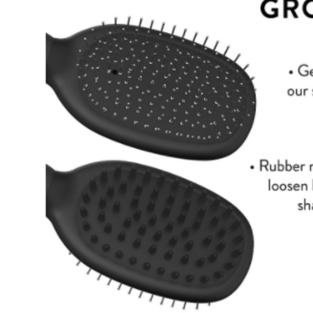 Rubber massage side helps loosen hair and distribute shampoo in the bath