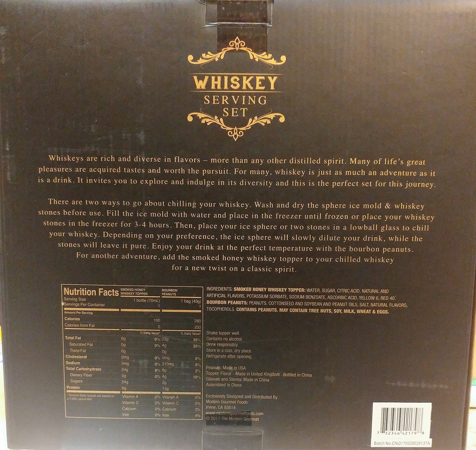 Whiskey Serving Set with Smoked Honey Whiskey Topper and Bourbon Peanuts