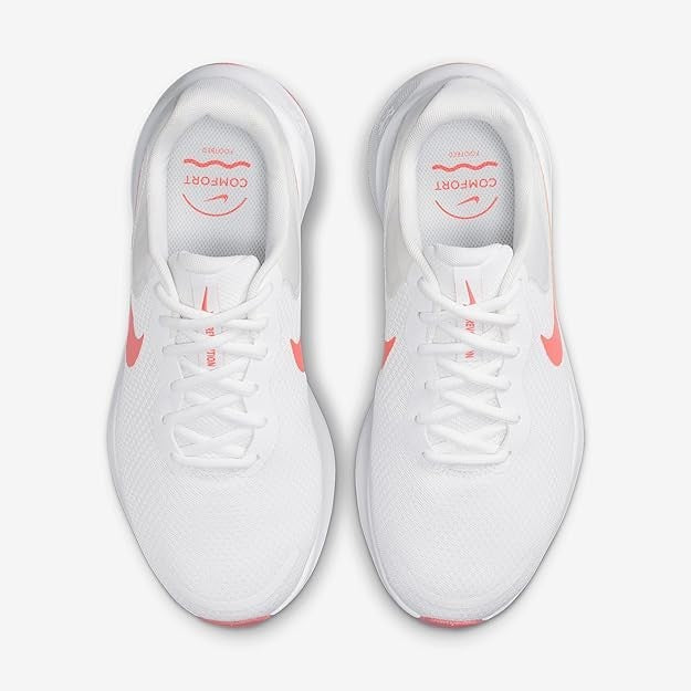 Women's Nike Revolution 7 Wide Road Running Shoes (FZ6829-100) White/Magic Ember