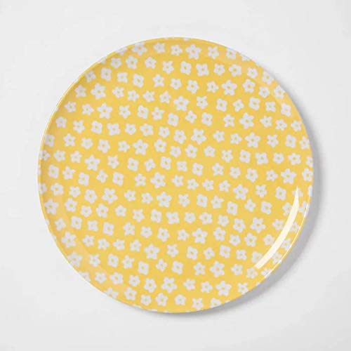 Yellow Floral Melamine Floral Dinner Plate Spritz Set of 12, (12 Piece Set)